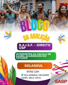 No dia 07 de fevereiro de 2026, a partir das 12h, a Praça General Craveiro Lopes, no bairro do Bixiga, será novamente o palco dessa grande manifestação cultural. Com o mote “Anistia na casa do ‘Carvalho’”, o Bloco da Abolição convida o público a refletir, celebrar a cidade por meio do samba, do batuque e da festa popular.